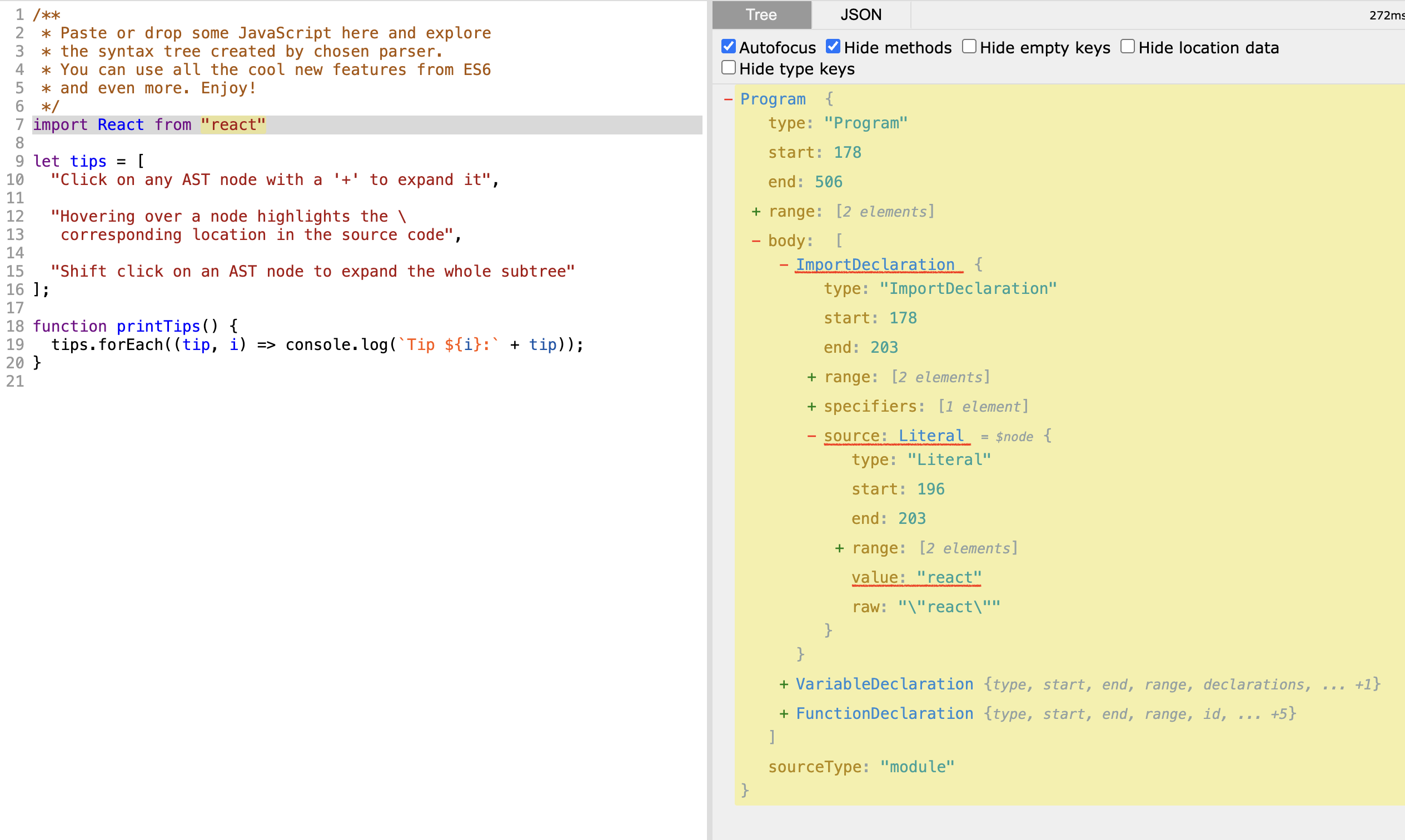 Parser를 통해서 변환되는 AST가 구체적으로 어떤 형태인지 보는 방법